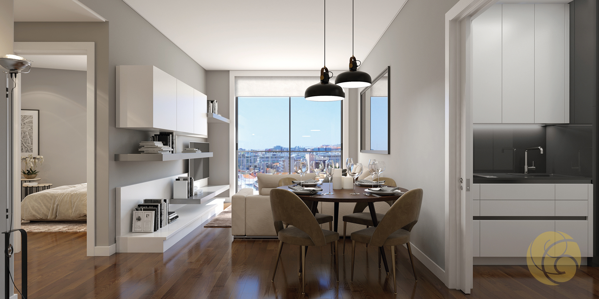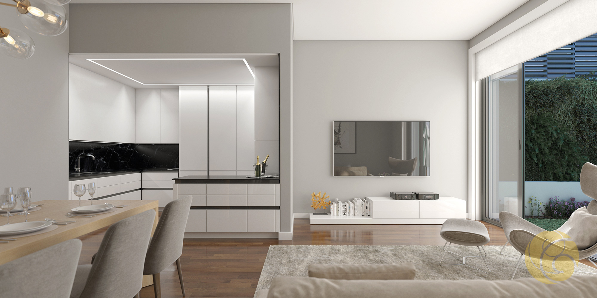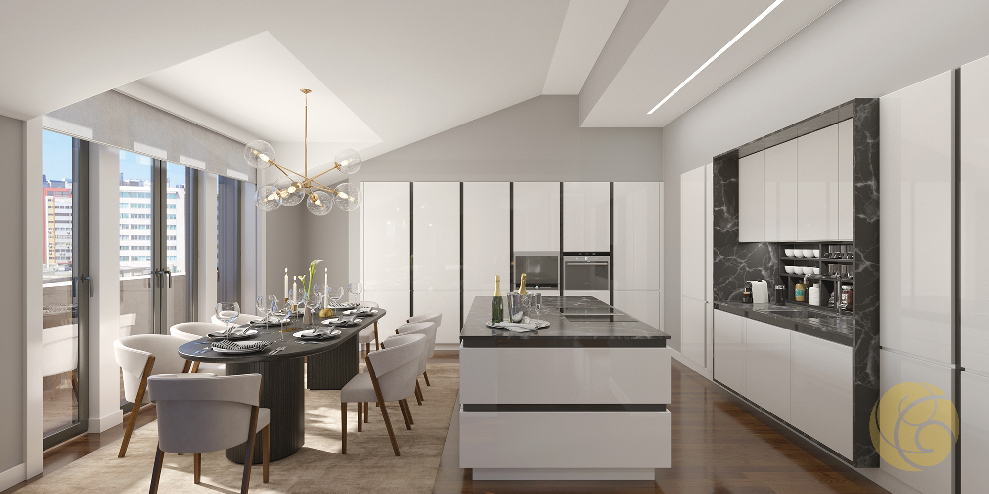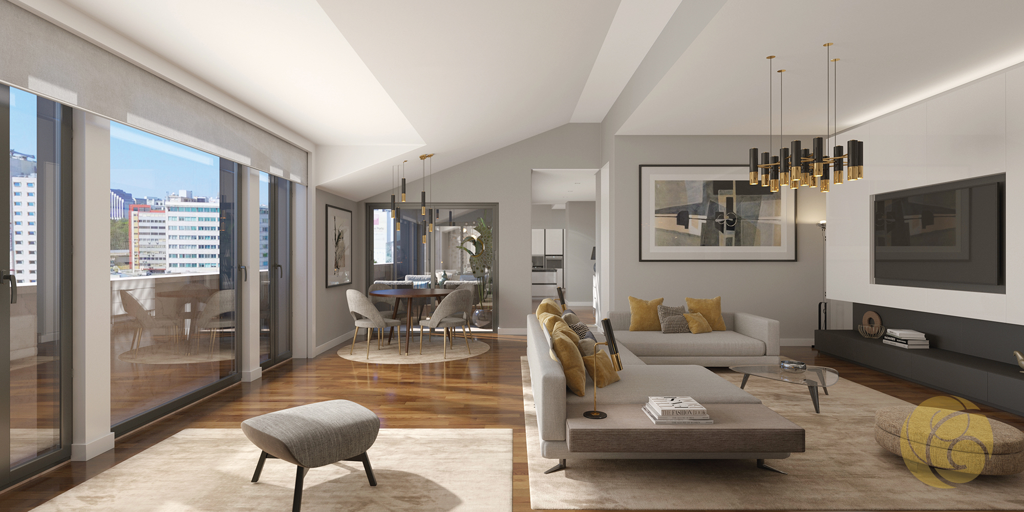 Todos os detalhes apelam à estética e funcionalidade: a criteriosa seleção de uma refinada palete de tons, os elegantes detalhes que se integram perfeitamente nos espaços, e os acabamentos com materiais nobres.