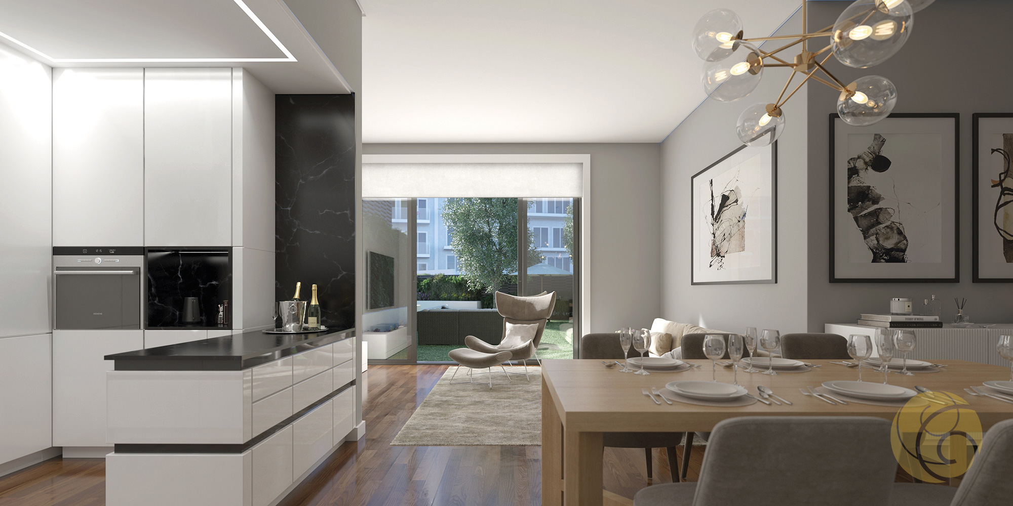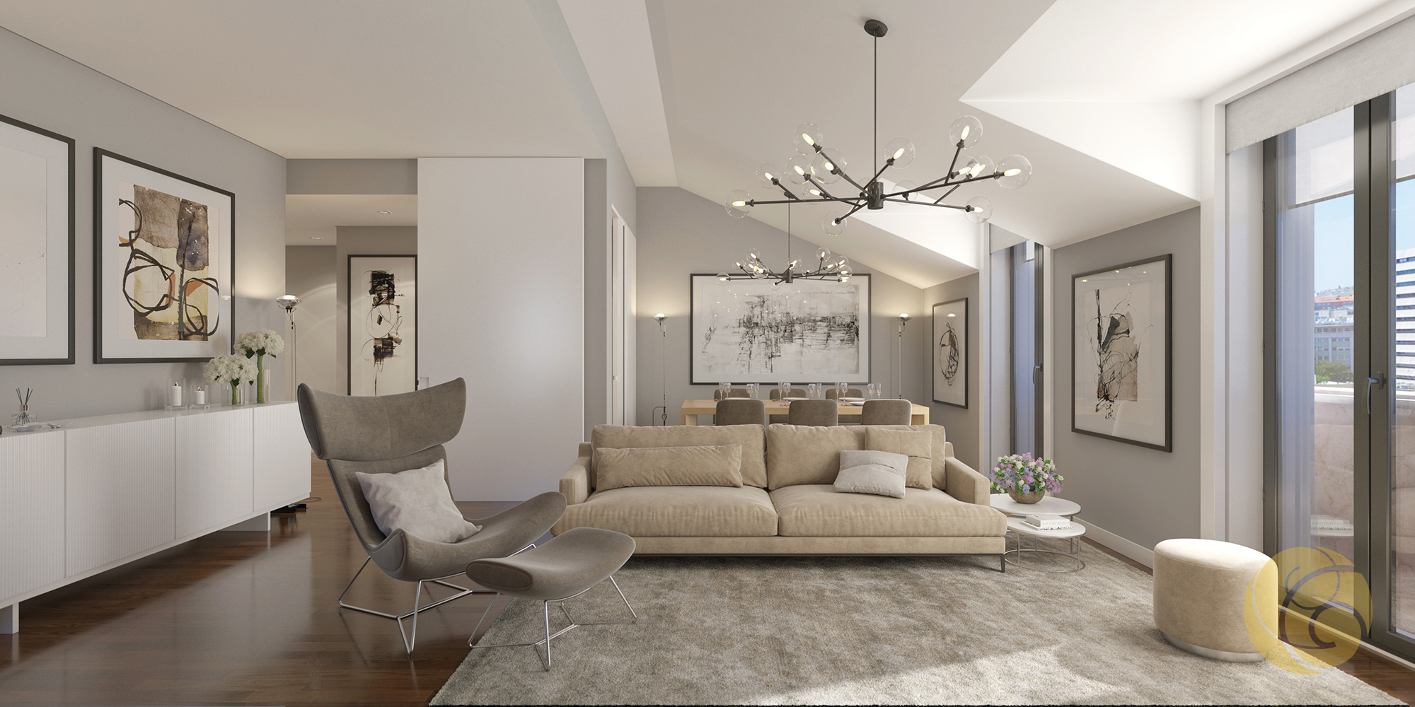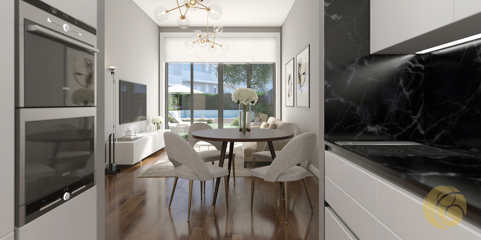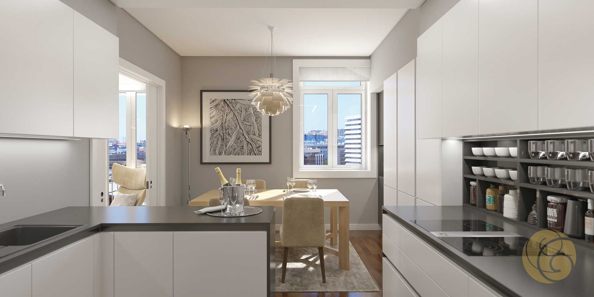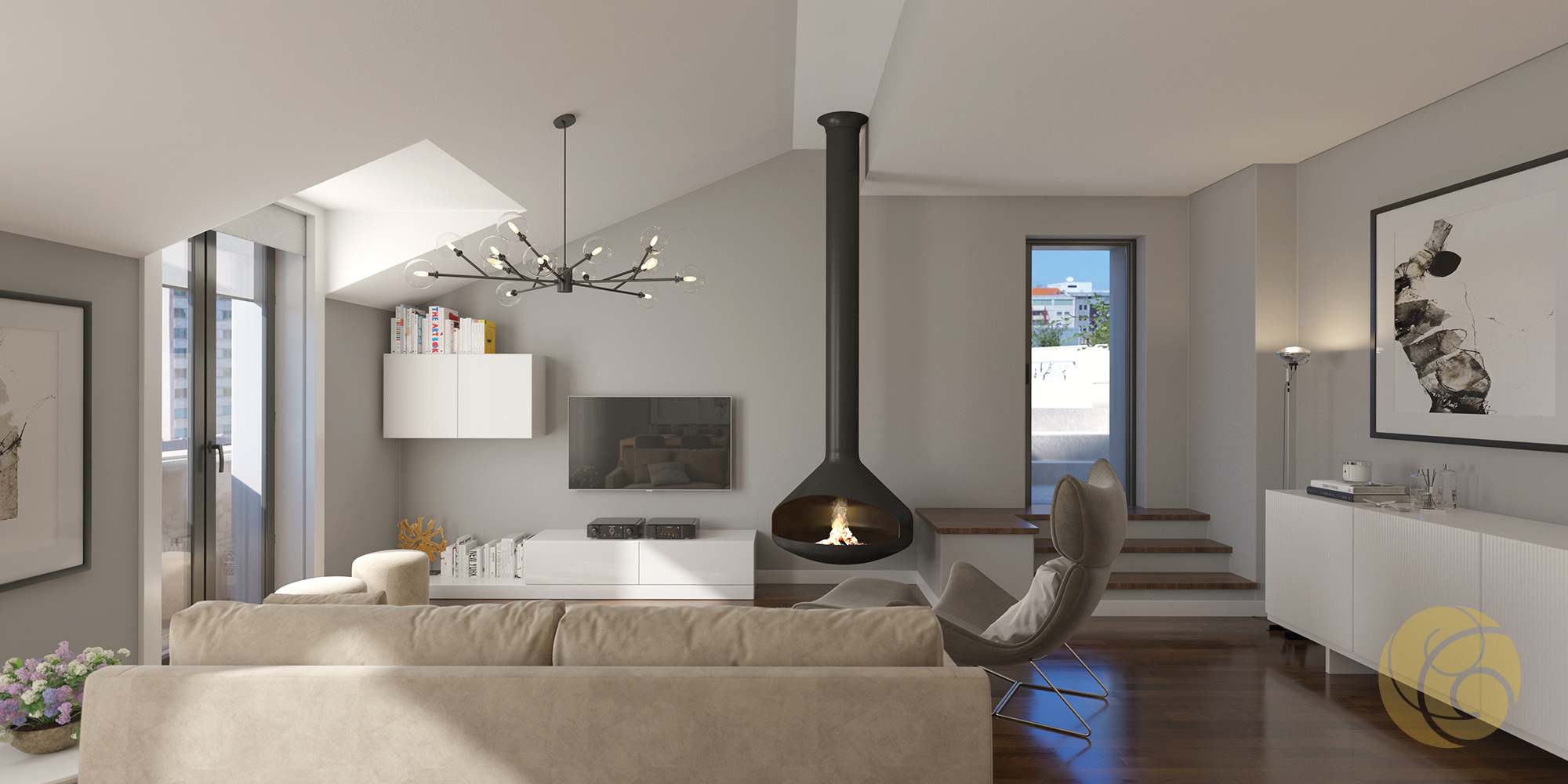 Todos os detalhes apelam à estética e funcionalidade: a criteriosa seleção de uma refinada palete de tons, os elegantes detalhes que se integram perfeitamente nos espaços, e os acabamentos com materiais nobres.