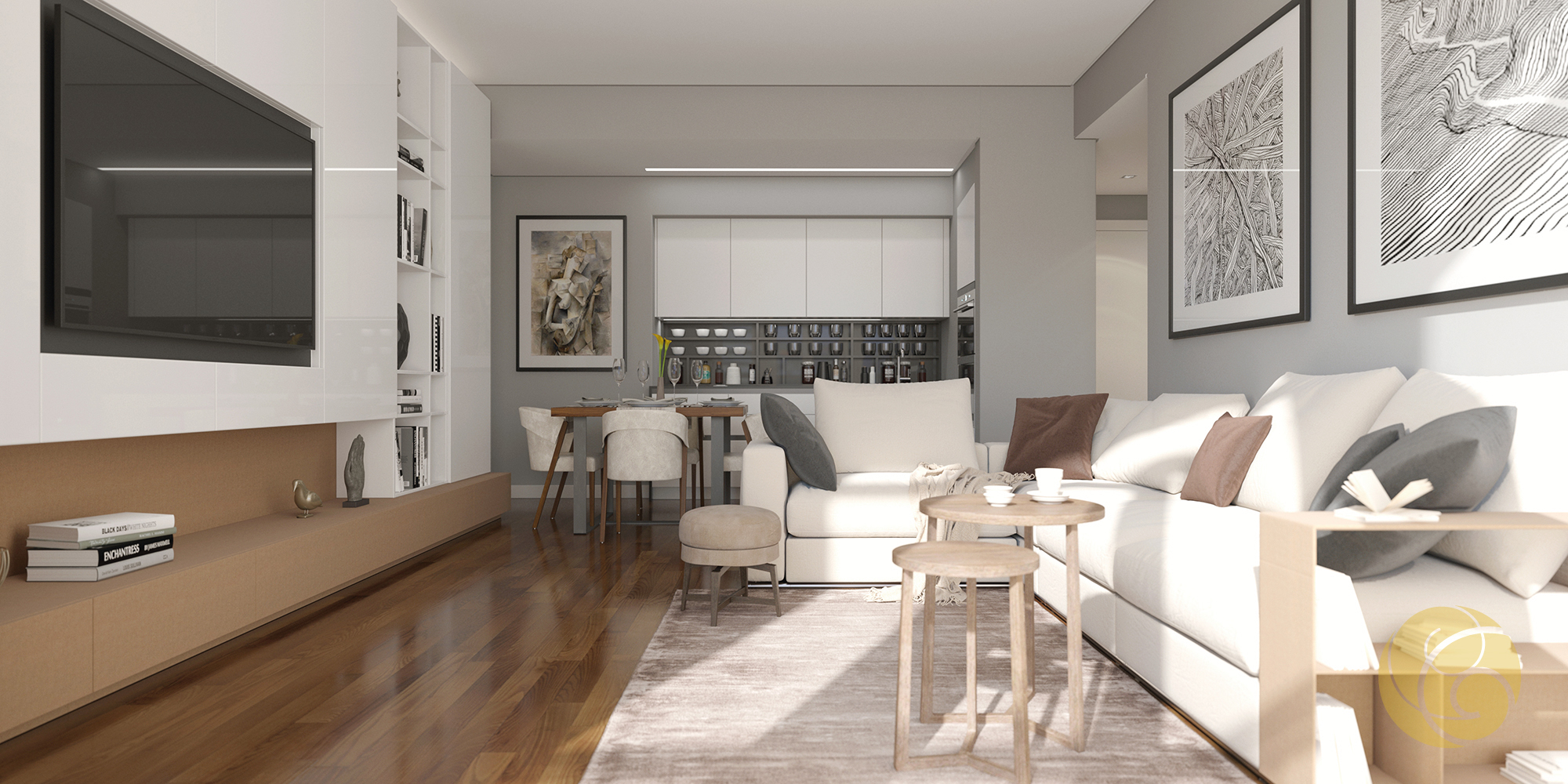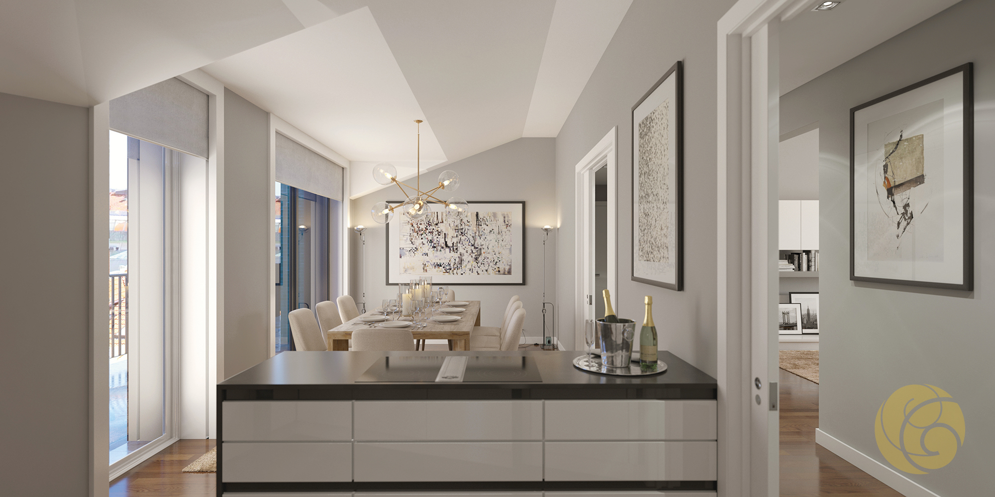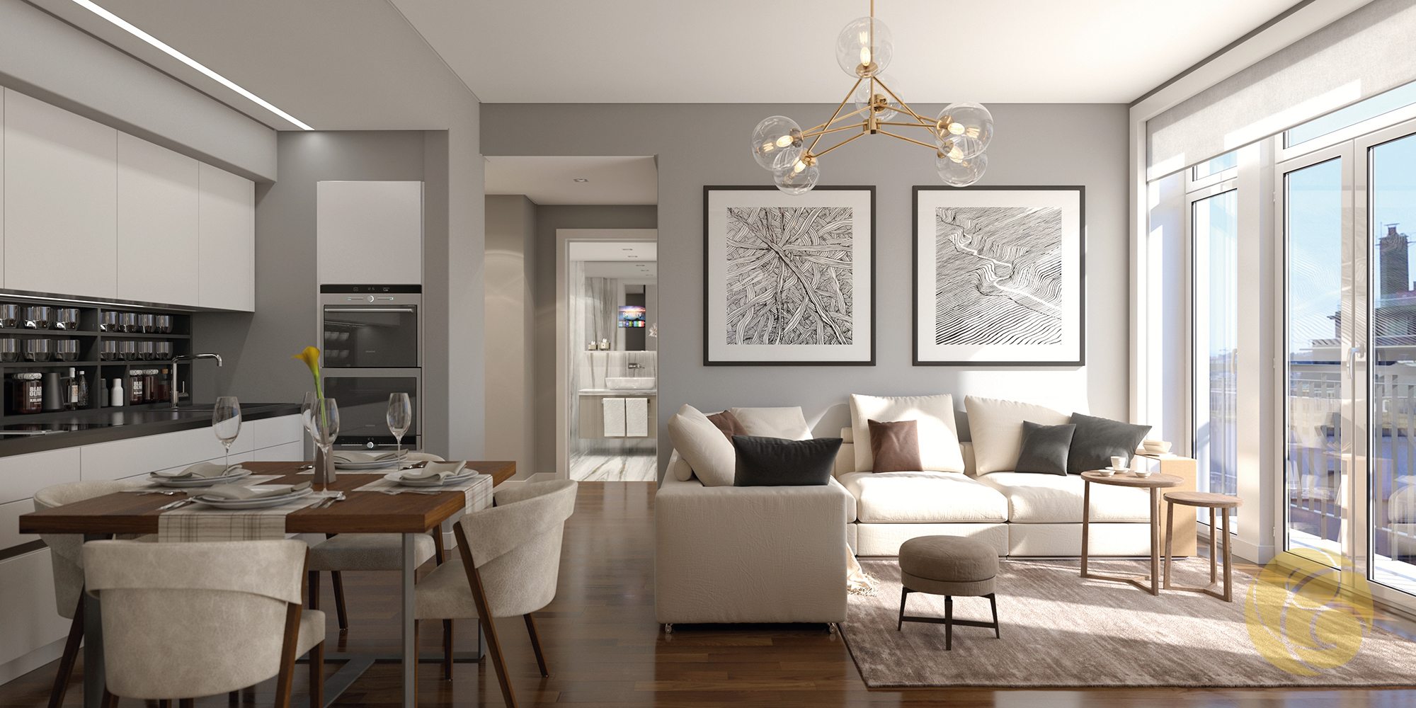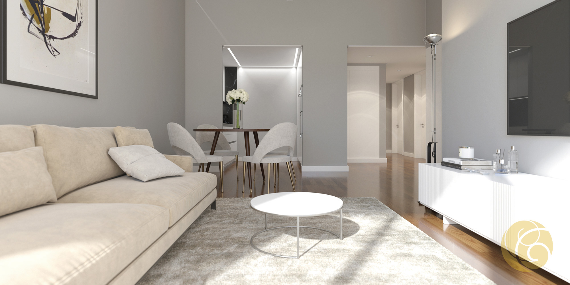 Todos os detalhes apelam à estética e funcionalidade: a criteriosa seleção de uma refinada palete de tons, os elegantes detalhes que se integram perfeitamente nos espaços, e os acabamentos com materiais nobres.
