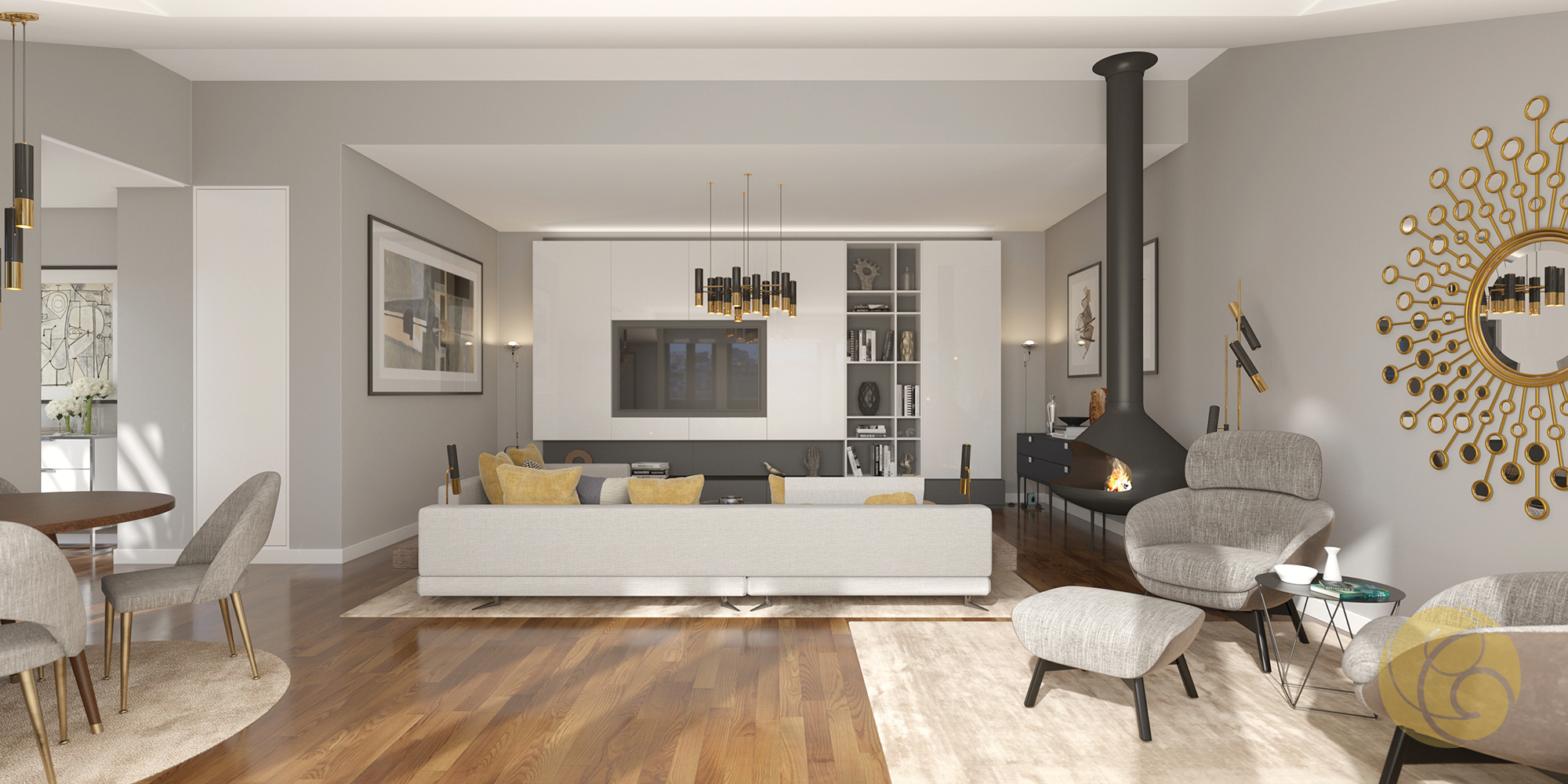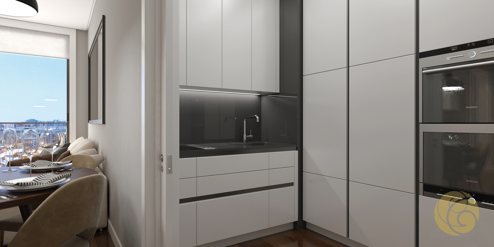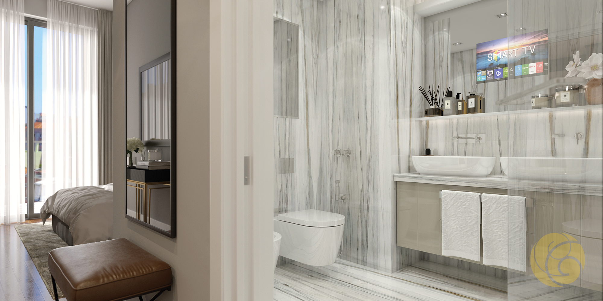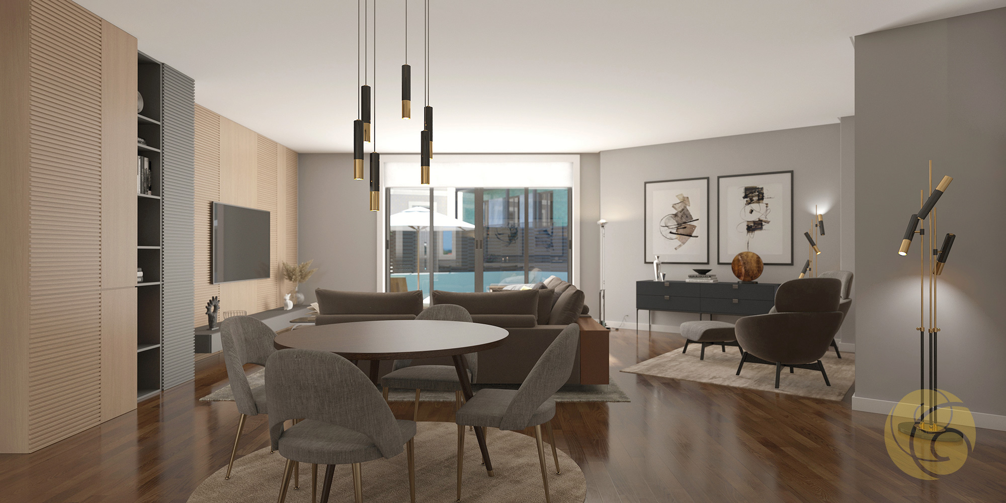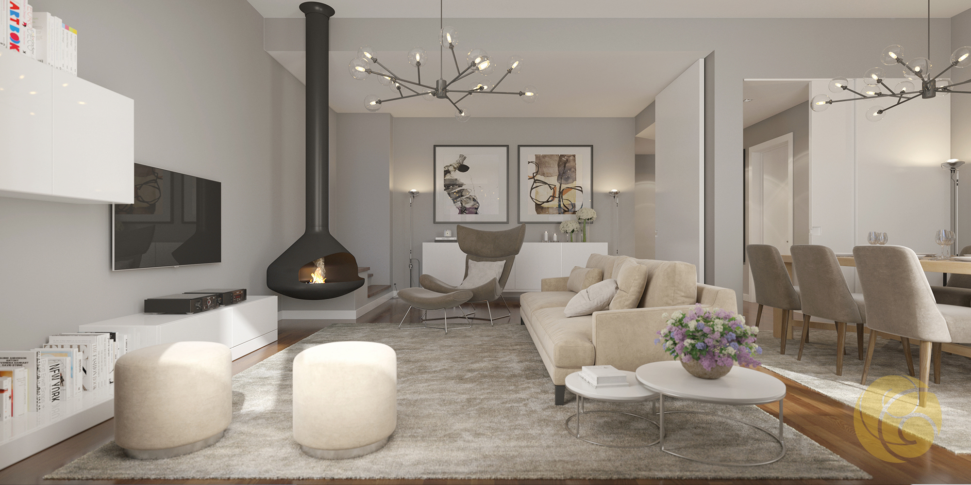 Todos os detalhes apelam à estética e funcionalidade: a criteriosa seleção de uma refinada palete de tons, os elegantes detalhes que se integram perfeitamente nos espaços, e os acabamentos com materiais nobres.